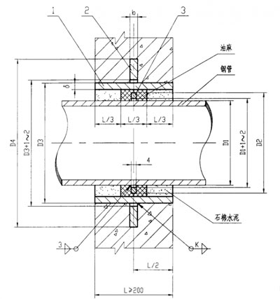 綜上所述不難知道,DN50的A型剛性防水套管對應的穿過的鋼管的公稱直徑為DN50(φ=60.3)。進一步管材發現,剛性防水套管的公稱直徑也與穿過的鋼管的公稱直徑是一一對應的關系,且對應關系為:剛性防水套管DNXX=DNXX的鋼管。